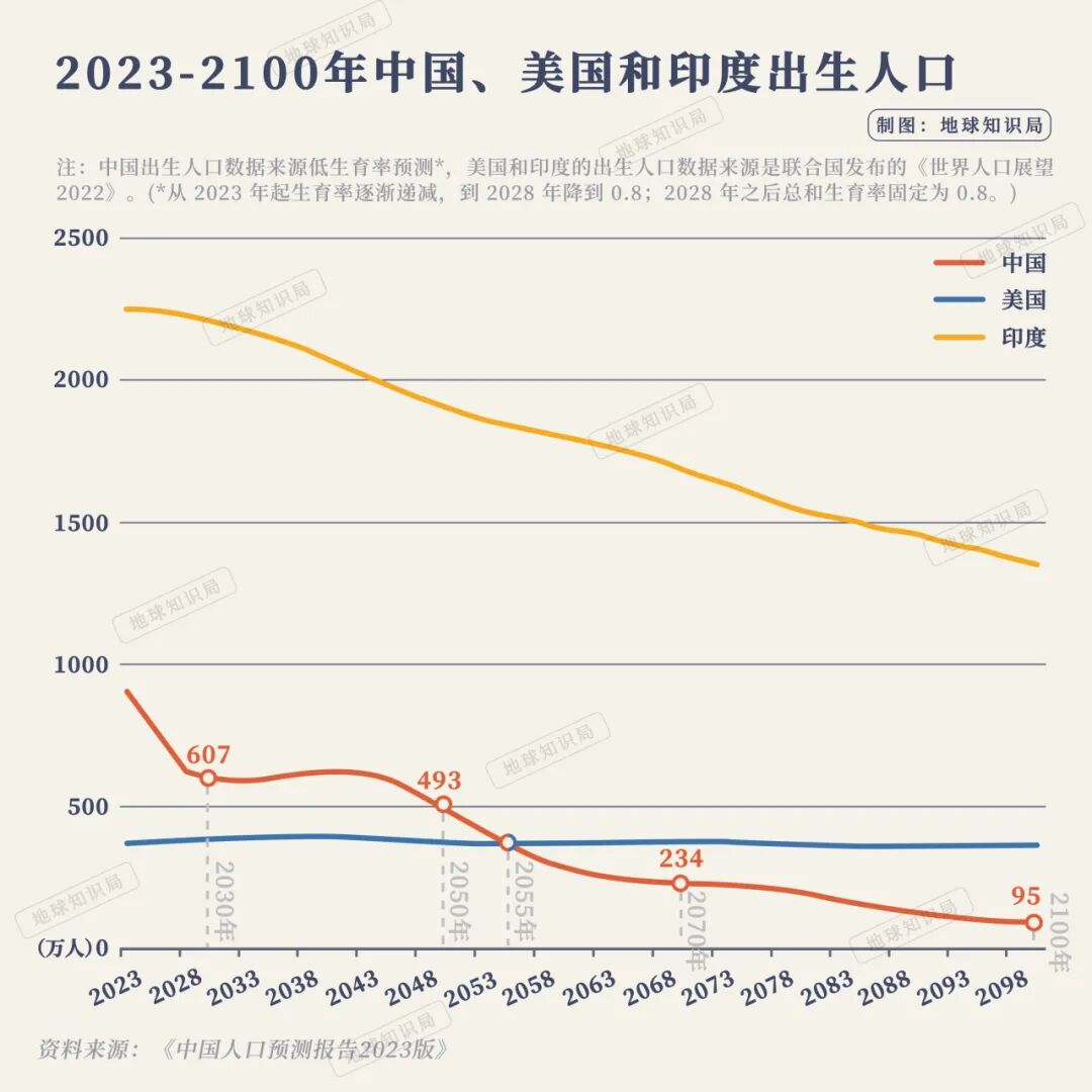 值得一提的是,该报告认为,中国的出生人口将与美国的出生人口在2055年交汇,此后美国的出生人口将一直高于中国。