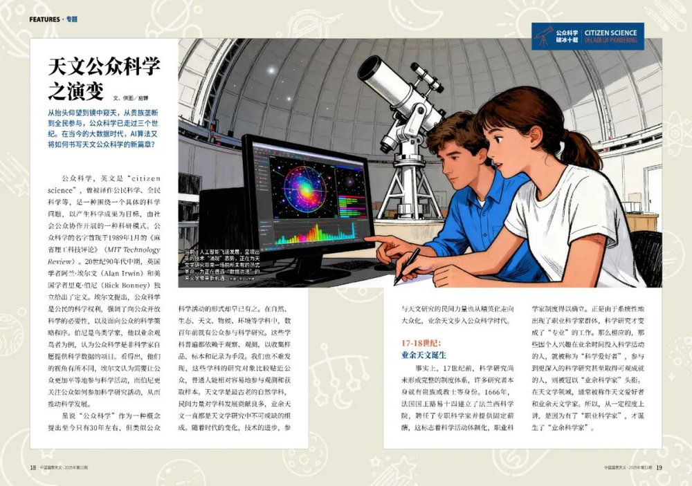 从抬头仰望到镜中窥天,从贵族垄断到全民参与,公众科学已走过三个世纪。在当今的大数据时代,AI算法又将如何书写天文公众科学的新篇章?