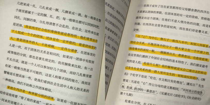 (《乡土中国》中对“团体格局”和“差序格局”的论述)