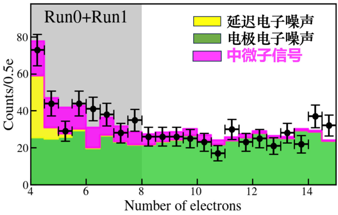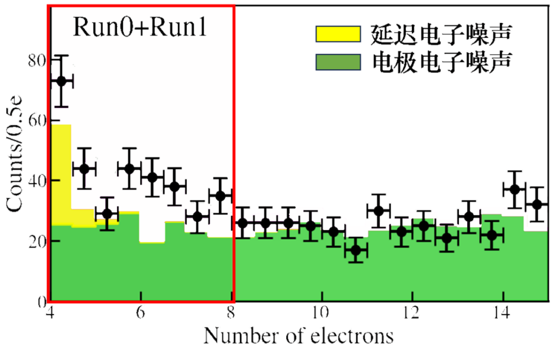 但是,世界上没有免费的午餐——这个图是欧洲实验组的结果,也就是我们国际上的竞争对手。可以看到黑色是数据点,而这个数据的数目远远超出我们预期的数量。这就意味着,这种低阈值的探测模式有大量的、难以理解的、低能量的噪声。