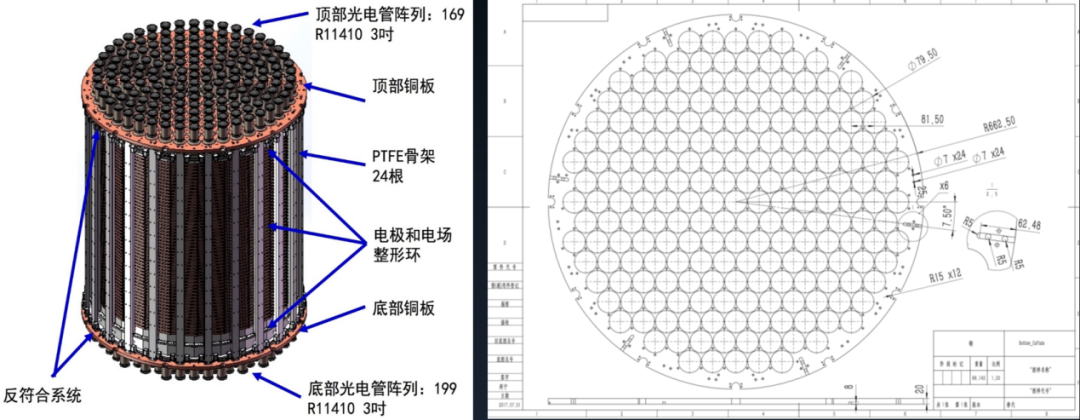 因此,我们就用特氟龙作为整个探测器的基本框架:里面发光后,通过特氟龙反射到上下两边的光电倍增管上进行收集。而且这种材料,可以实现非常高的纯度。