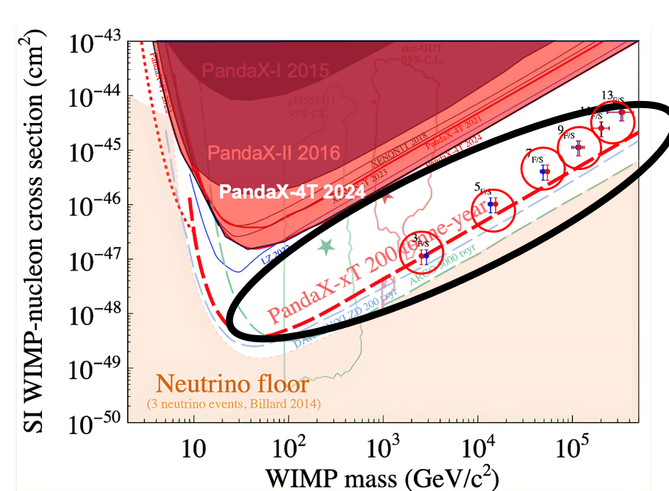 现在我们向深水区不断地进行寻找,距离这个信号可能存在的区域,还有1到2个数量级灵敏度的差异。我们怎么样才能达到这个目标呢?这需要200吨年的曝光量——这就是说,我们用4吨的探测器运行50年,也就是200吨年,就能够达到这样一个目标。