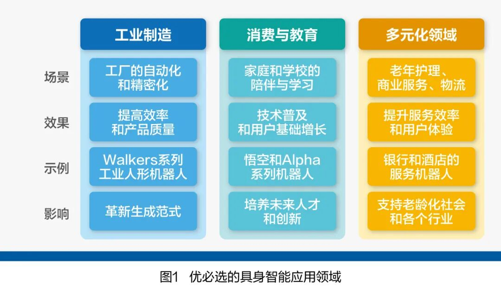 技术创新和生态构建最终要通过产业化落地实现价值。优必选在多个应用领域的成功实践,展现出具身智能技术从实验室走向商业化应用的清晰路径(见图1)。