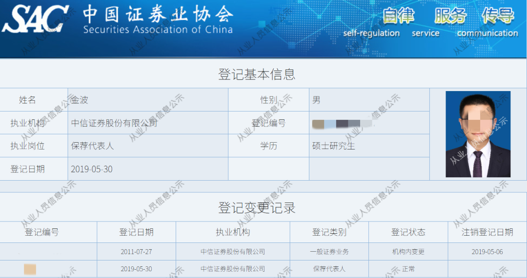 但中国证券业协会官网显示,他仍是中信证券在册保代。中信证券在报告中预计,金波将继续带队推进宇树科技的后续IPO辅导工作。