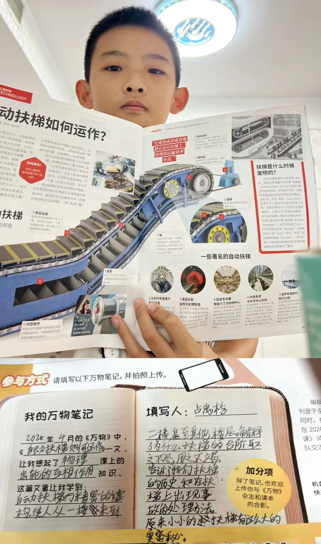 当他们读到杂志中的《自动扶梯如何运作》,就想起了物理课上的“齿轮的互相作用”;