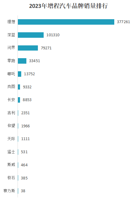 2023年开始,增程销量增长近2倍,14个品牌参与,理想依旧有近6成市场。