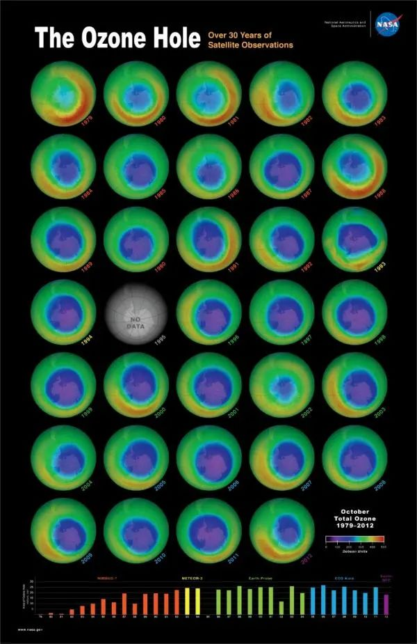 这报告一发,NASA也赶紧调自家的卫星数据来看,结果也呆住了。他们发现,南极上空真的有一个巨大的 臭氧层空洞 ,面积比整个美国国土还大!