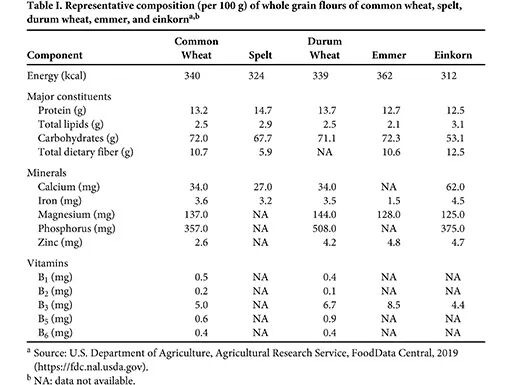很多机构和学者都对古代小麦和现代普通小麦从营养上进行了测定,但基于所选品种以及不同的解读方式,一直众说纷纭。可以确定的是, 单粒小麦、斯佩尔特小麦是少数拥有9种人体必需氨基酸的品种(普通小麦通常缺乏赖氨酸) 。
