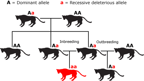 在大型老虎群中,由于老虎很多、基因丰富,两个隐性“坏基因”相遇的几率被冲淡了。但是在近亲中,所有个体的基因相似度较高,隐性“坏基因”纯合的概率大大提升。
