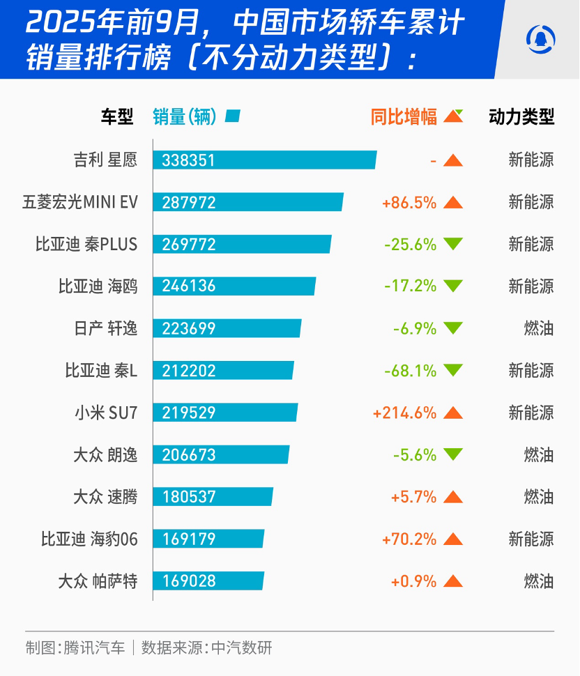 中国汽车工业协会数据统计,2024年全年,传统燃料乘用车国内销量为1155.8万辆,同比下滑17.7%。 不过,到了2025年前9月,其销量却同比增长1.7%至814.1万辆,尤其是最近三个月连续环比上升,强势品牌的明星车型销量表现令人吃惊。