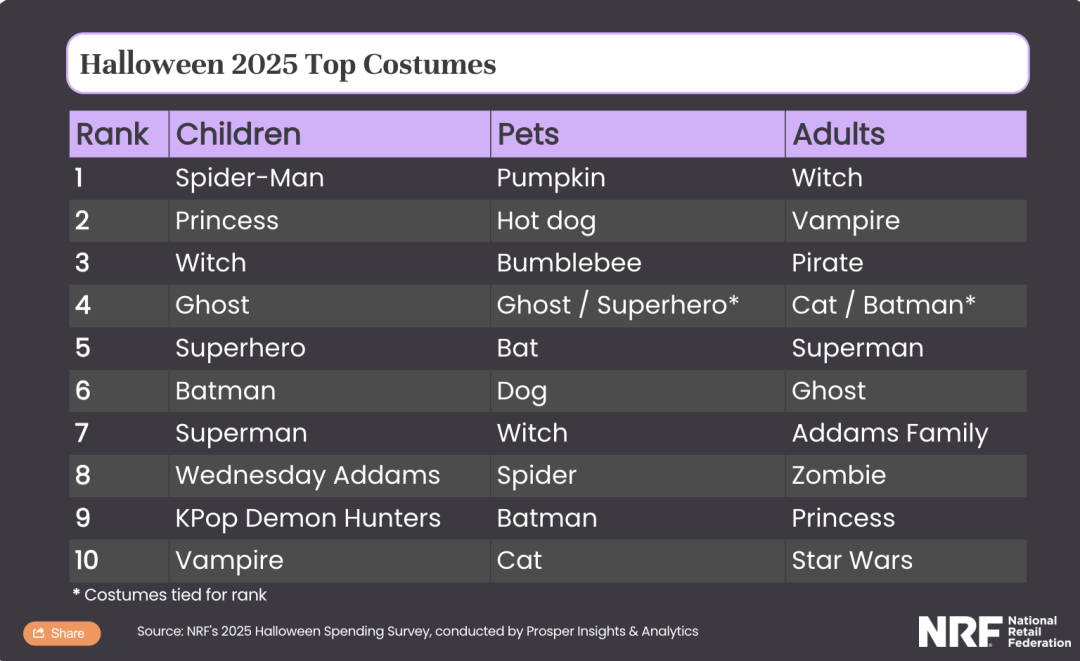 美国人过万圣节在房屋装饰上的预算,以及在孩子、宠物和成年人身上置办各种服饰的排行