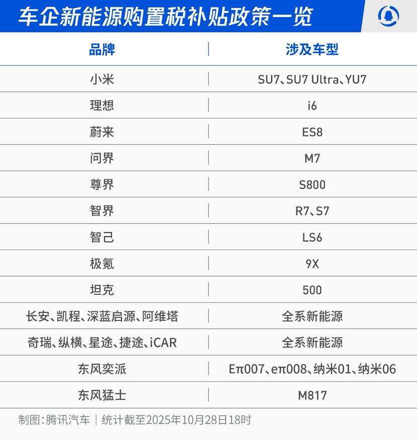 抓住最后两个月的机会,不少车企推出优惠方案,承诺客户只要年底前锁单,年前无法提车导致的购置税补贴损失,车企自己掏钱补上。 截至10月28日,已经有包括小米、理想、蔚来等在内的20余个品牌推出购置税兜底政策。