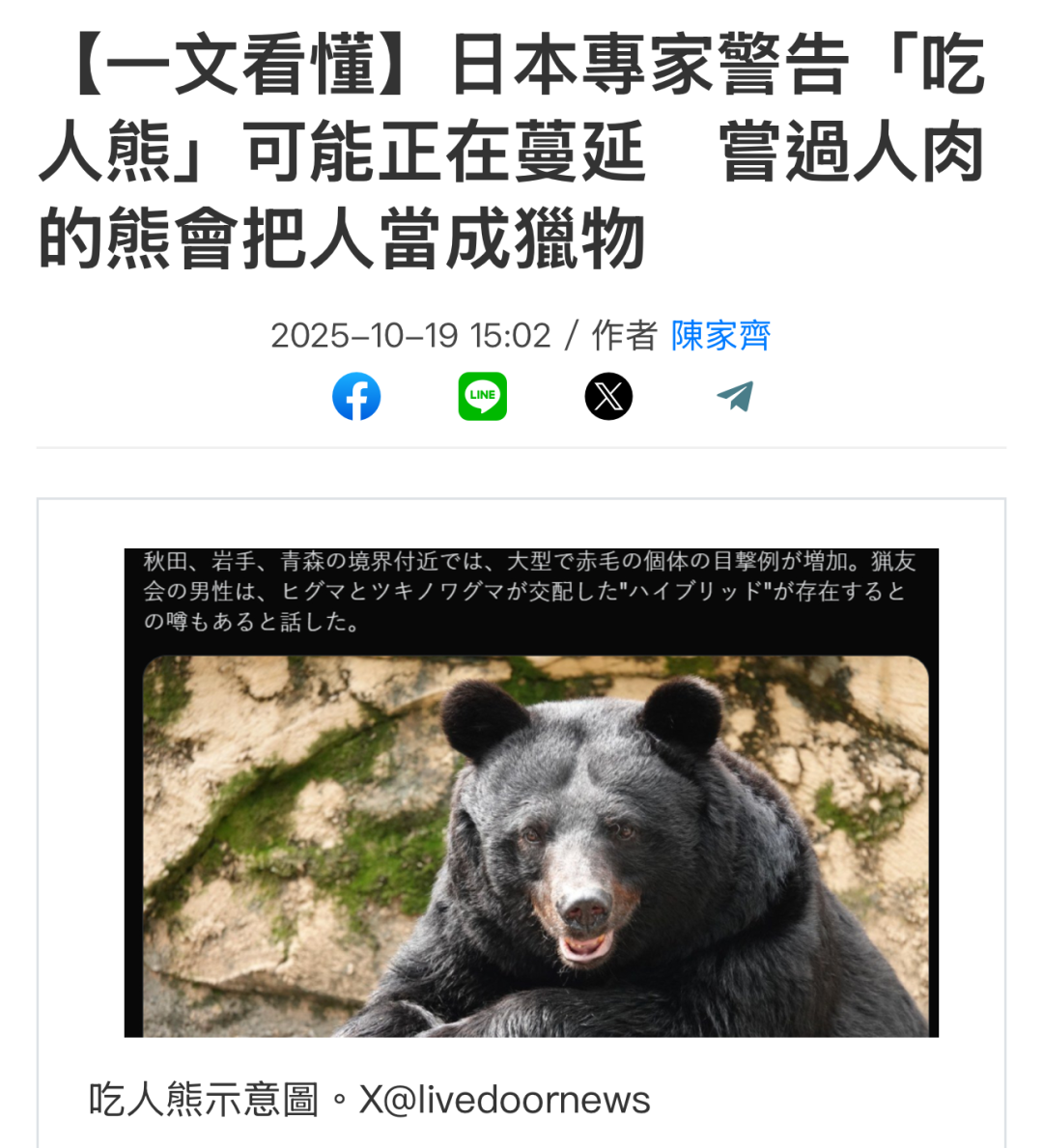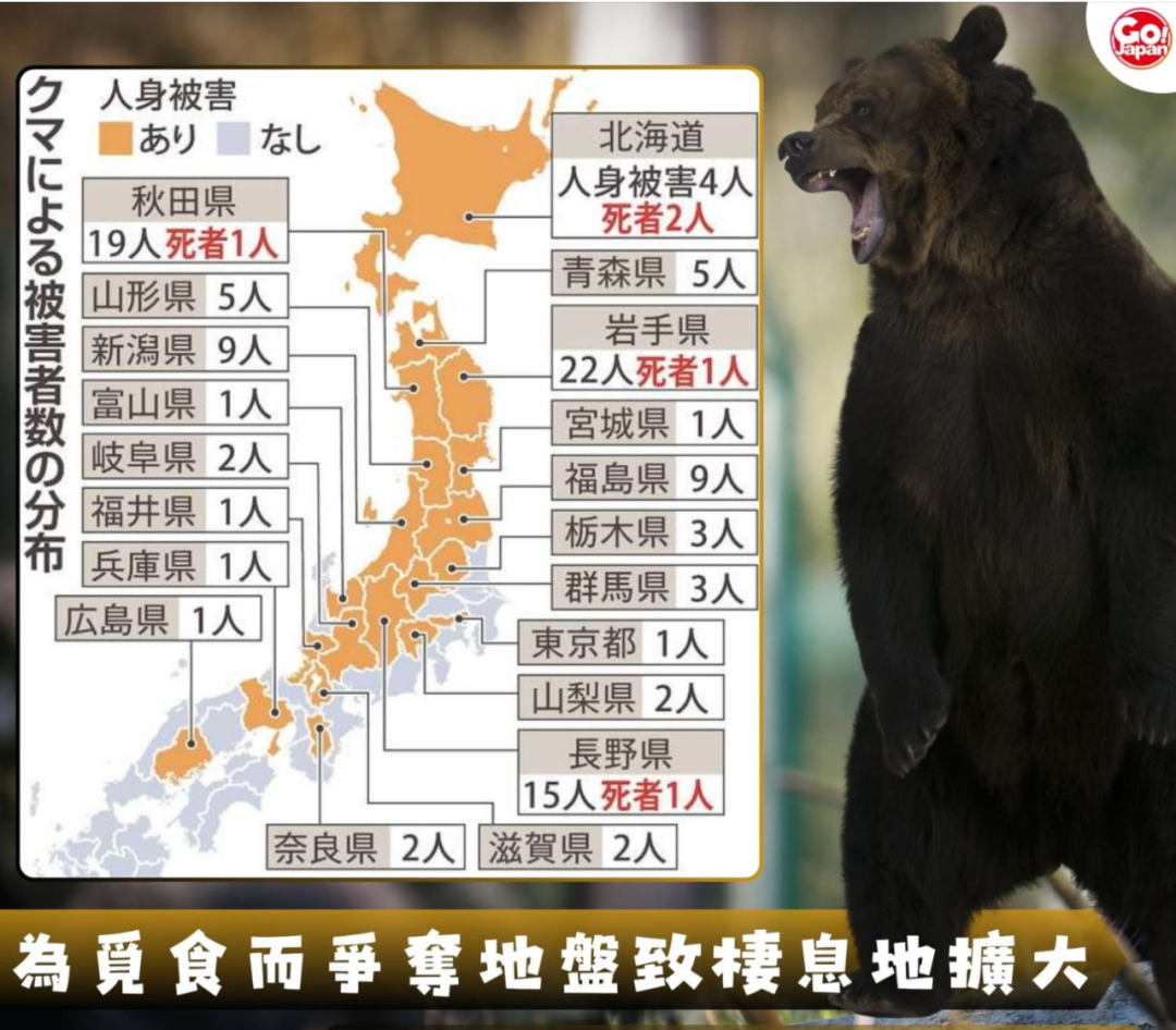 就连东京等大城市,近日也陆续出现 50年未见的“熊出没” 。熊有较强的学习能力,能和人类斗智斗勇,还会因食物不稳定而放弃冬眠,届时可能会转化为 全年都不能放松戒备 的长期抗战。
