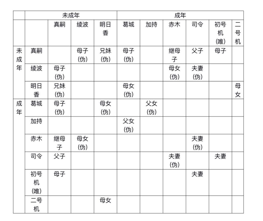 如果我们将EVA中主要角色间的关系,依据这一思路来进行整理,就可以得到如下的表格: