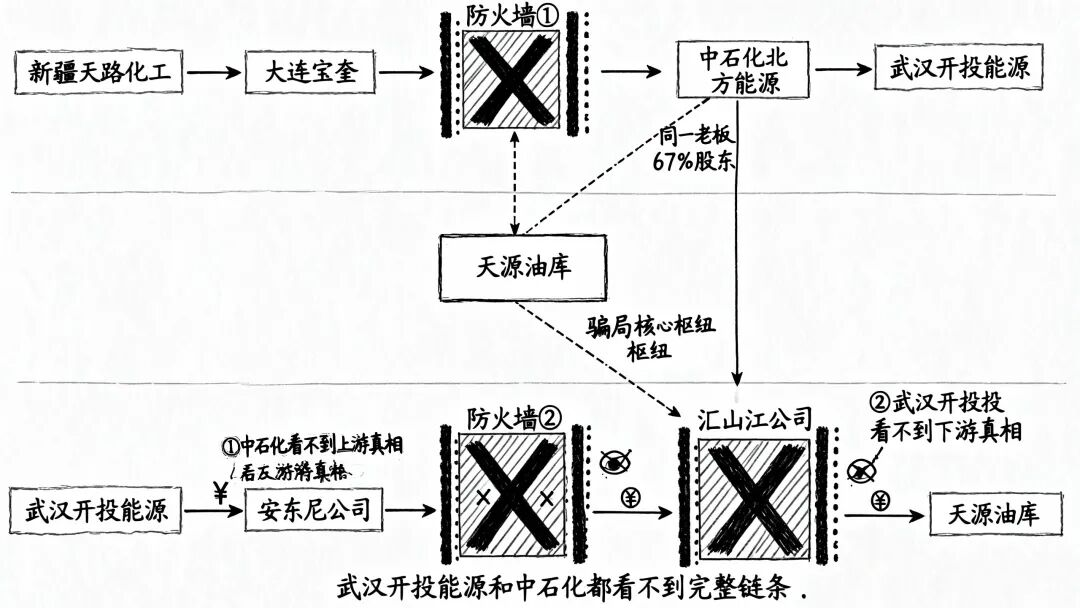 因为在正常的商业交易中,每个环节只对自己的直接上下游负责。武汉开投能源的供应商是中石化北方能源,中石化北方能源的供应商是谁,这是中石化自己的事情。