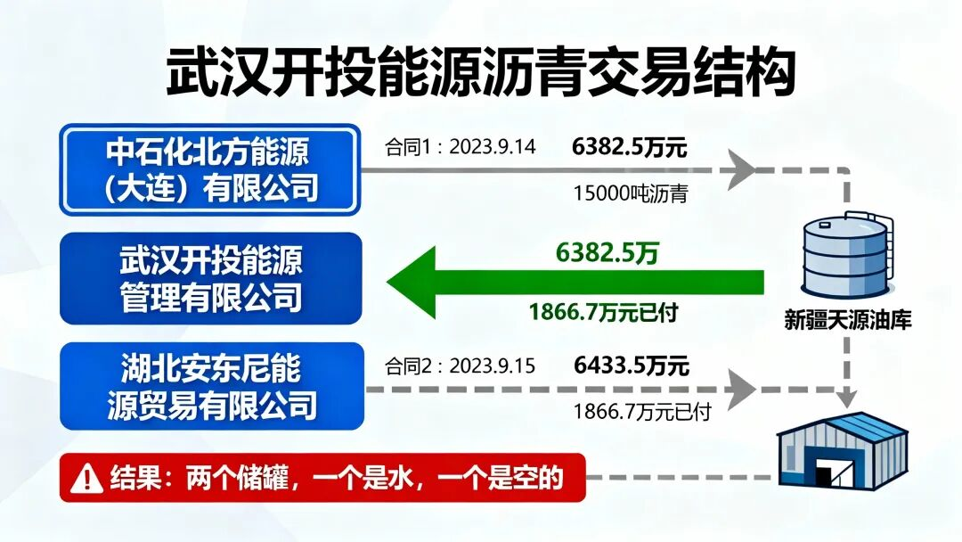 合同签完,武汉开投能源把6382.5万元打给中石化北方能源,以为货已经到了天源油库。