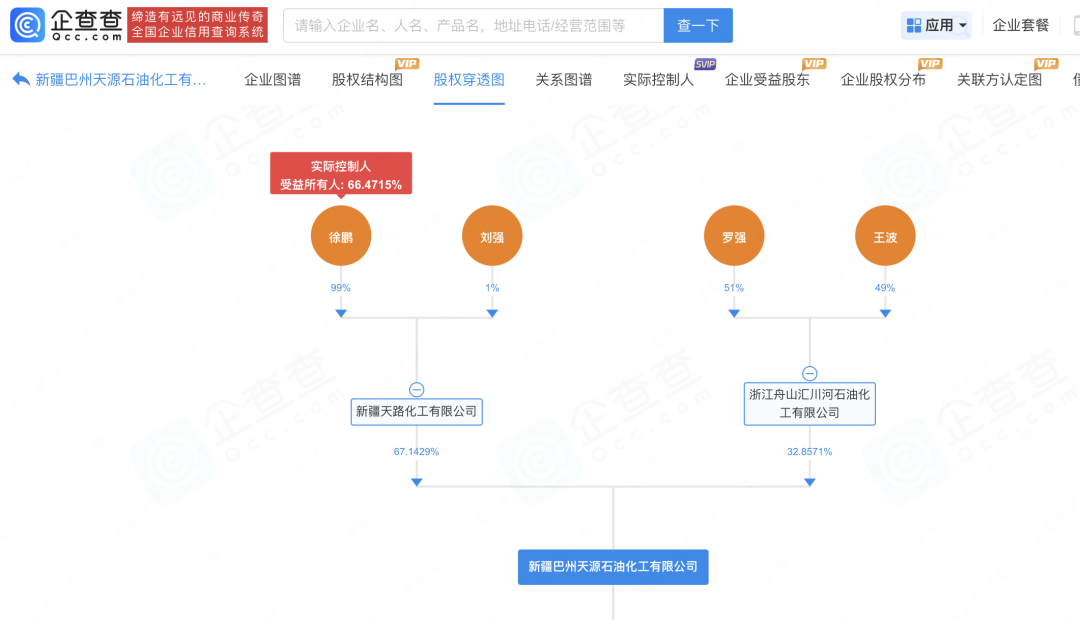 首先,新疆天路公司和天源油库的法定代表人是同一人——徐某。不仅如此,新疆天路公司还是天源油库的大股东,持股67%。