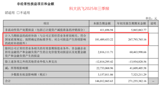 从2022年到2024年,科大讯飞计入当期损益的政府补助连续三年超40亿元,营收占比稳定在20%左右;2025年前三季度2.68亿元补贴,不仅填补了6667万元的净亏损,更撑起了三季度的盈利“高光”。