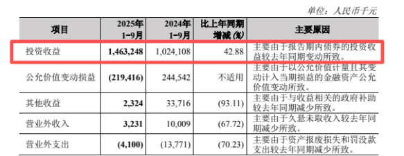 更令人担忧的是,业绩增长依赖“非主业临时输血”,投资收益同比暴增111.10%至12.29亿元,但这种增长依赖债券投资等阶段性收益,可持续性存疑,反而凸显了主营业务的疲软。