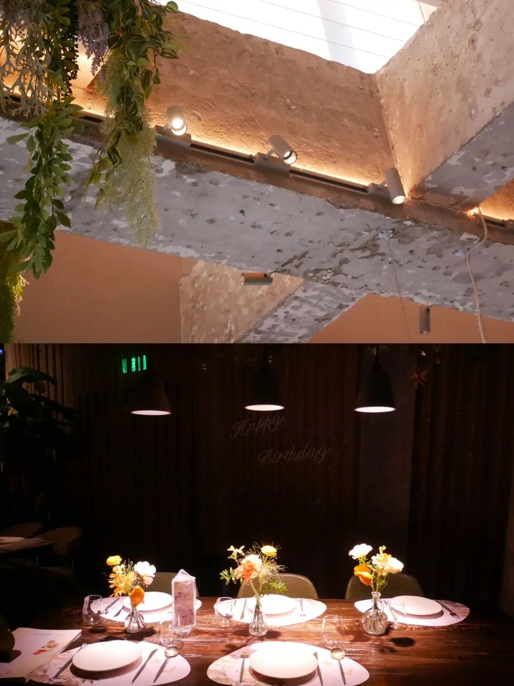 除此之外还有氛围光——于漂亮饭餐厅而言最重要的,和其他普通餐厅差别最明显的灯光设计。