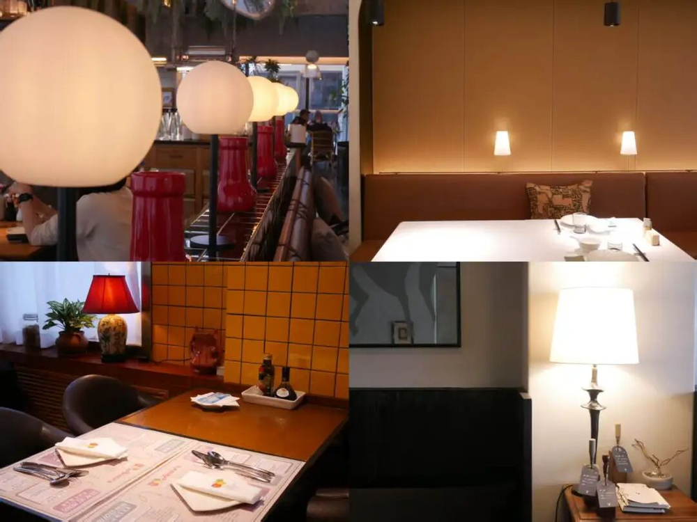 这类氛围光借助造型各异的灯具,如球形灯、壁灯、台灯等,点缀在餐厅各处,丰富了空间的层次感,当顾客入座的时候,暧昧模糊的灯光往往就在它们的斜后方。