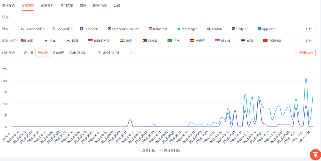 根据Dataeye-ADX数据显示,《Pixel Flow》目前并没有进行大规模投放,从10月初至今累计投放计划数不足百条。从投放素材来看,《Pixel Flow》既包含基于实机视频创作的素材,也包含概念视频+实机视频形式。目前表现较好的视频素材主要为以下2点理由: