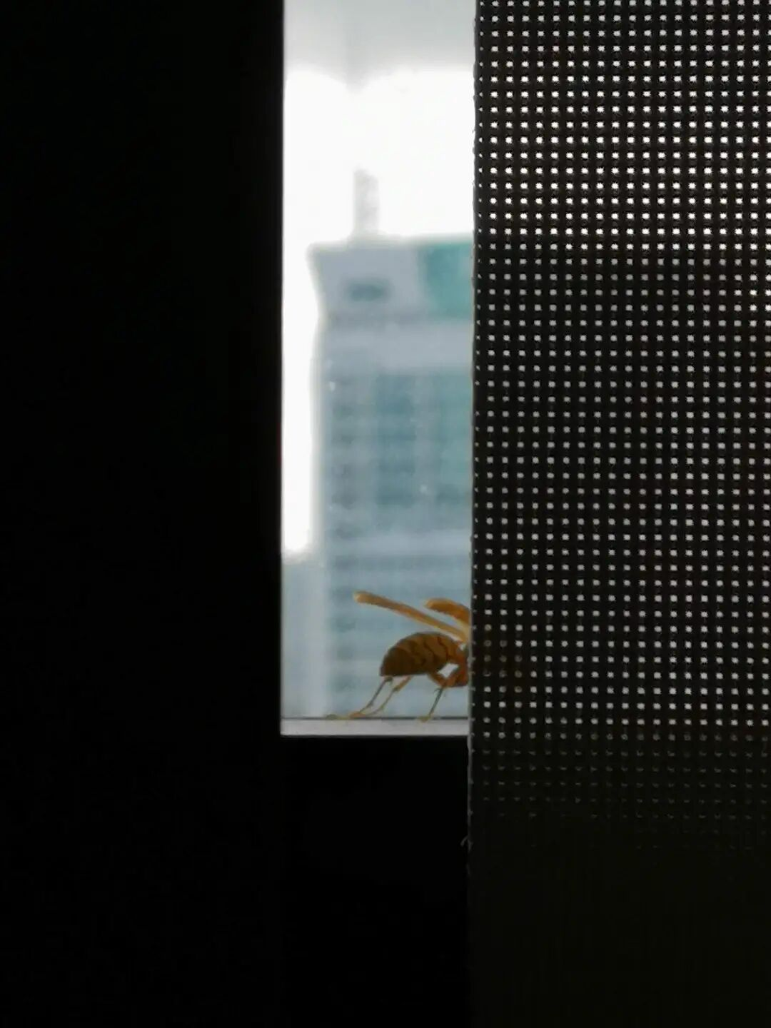 黄蜂与远处的群星广场:华强北人不是牛马,却像勤恳的蜜蜂,各自努力又相互依存,共同营造出复杂的群体生态(笔者拍摄)