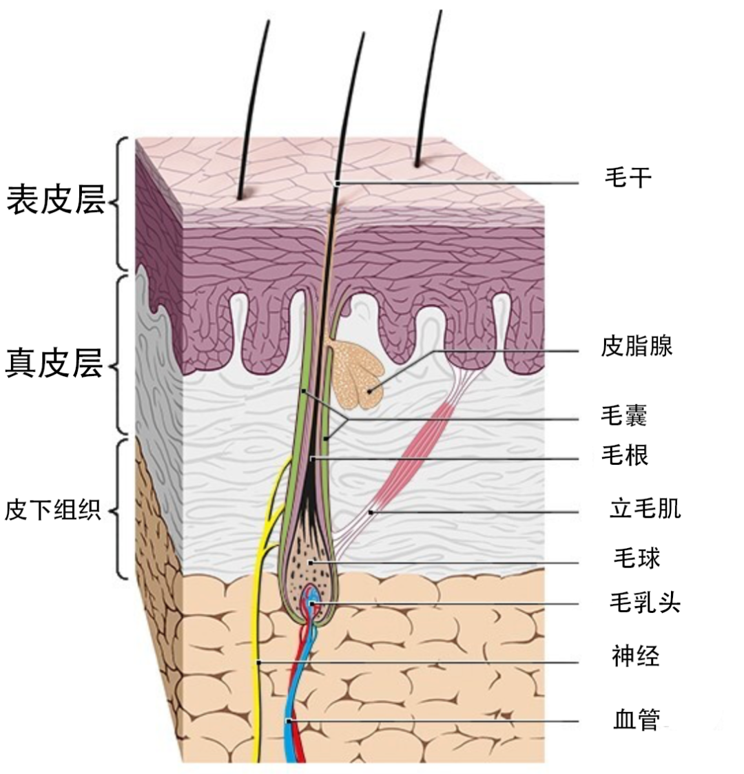 在毛囊真皮层中的毛乳头(hair papilla)就是这个日程表,负责头发生长的毛囊干细胞什么时候该上班开始生长,什么时候该下班进入休眠,都由这个部位分泌的激素和信号分子来调控。