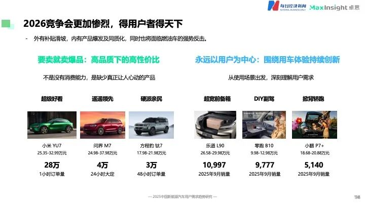展望未来,《报告》指出,2026年市场竞争将更趋激烈。行业面临多重挑战:对外,补贴政策进一步退坡;对内,产品爆发式增长伴随同质化现象加剧;同时,还需应对持续技术迭代的燃油车的强势反击。