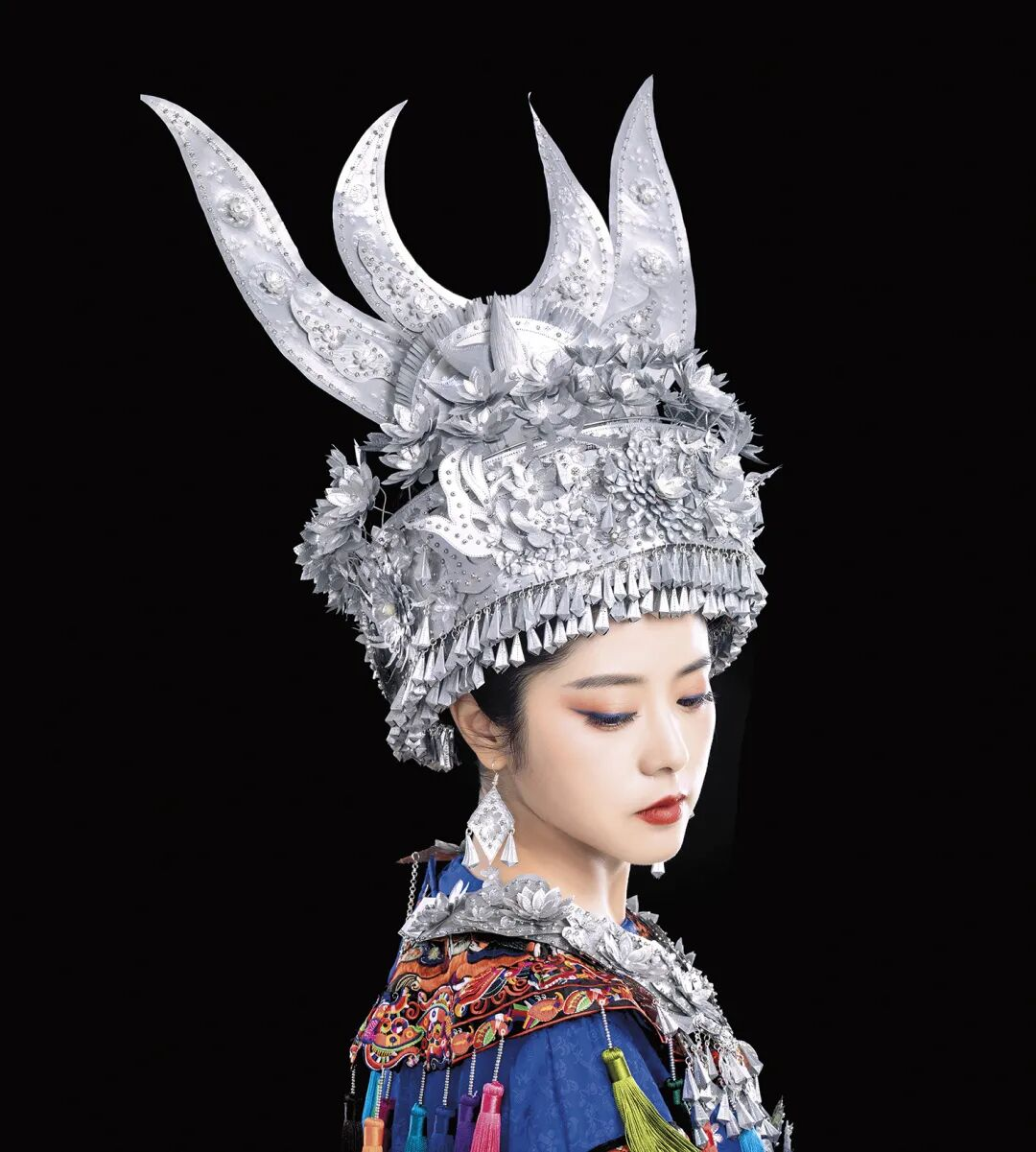有时,她花两个月用易拉罐做一身苗银服饰。废弃的罐子被剪去头尾,她用磨砂纸将铝片打磨至显出哑光银白的底色。她剪花朵、做吊坠,一片片剪,一层层叠。身边的亲戚朋友知道后,喝完啤酒纷纷把易拉罐给雁鸿留下,“现在家里还有好几麻布袋的易拉罐。”