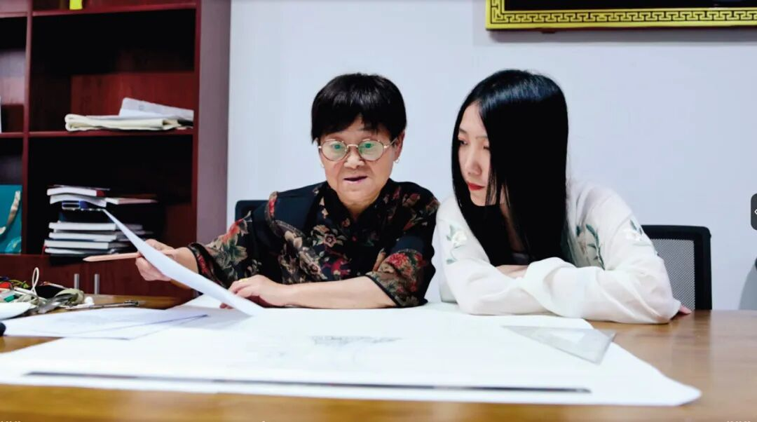 倪成玉教雁鸿如何把生活里的物件转换成花丝设计图,“比如一朵牡丹花怎么设计,花丝蝴蝶又长什么样。”