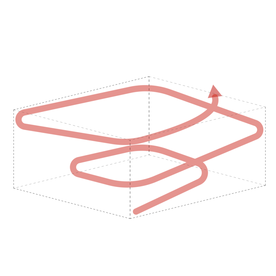 一根流线环绕所有的场所: 在图书馆的流线设计中,通过一根流线可将所有的场所串联起来。来访者可以通过随意的步行,在通道上发现各种各样的书籍及有意思的场所。
