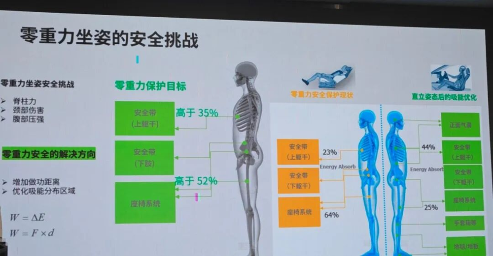 但是,随着坐姿形态向大仰角、零重力、旋转等方向发展,传统三点式安全带在这些坐姿工况下,已不能正常应用或提供有效的保护。舒适的零重力座椅背后是可怕的汽车安全带防护“漏洞”。