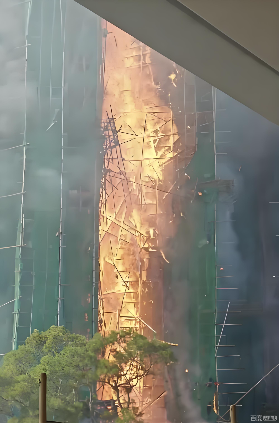 火灾发生时,所有大楼正进行外墙翻新工程,外部搭满了竹棚架,覆盖着绿色防护网,这项工程已经持续了一年零四个月。