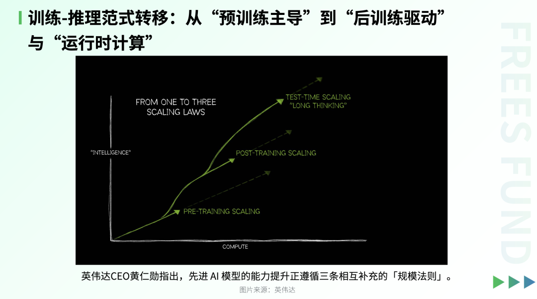 正如英伟达CEO黄仁勋所指出的,先进AI模型的能力提升正遵循三条相互补充的“规模法则”: