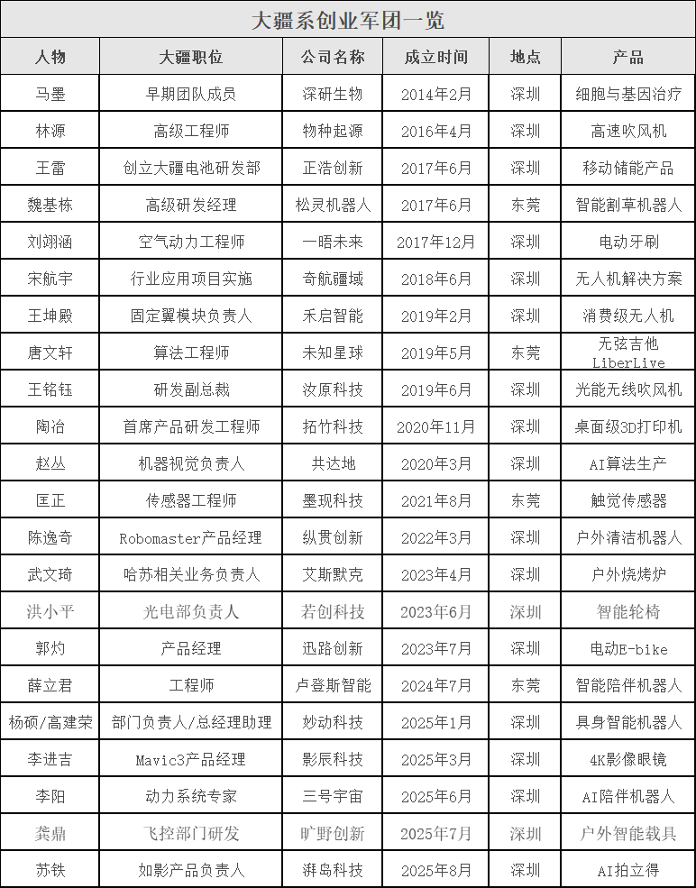 事实上,大疆人离职创业,拉上一批前同事组建初始团队,并不鲜见。