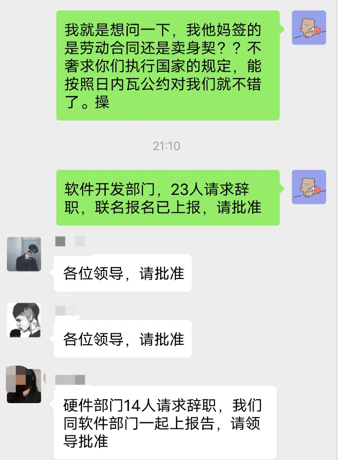 晚上21点10分,硬件部门员工表示,有14人请求辞职。