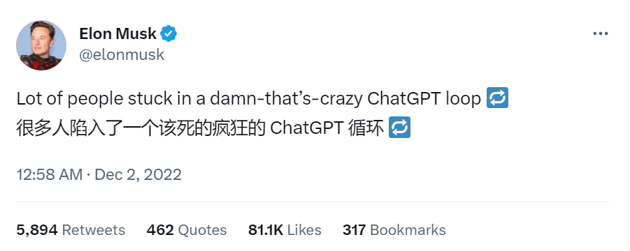 2月2日,马斯克在回复一名用户提到的 ChatGPT 对保守派存在政治偏见时,他提到“这是一个严重的问题”。