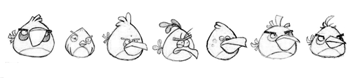伊萨洛向尼克拉斯和米凯尔展示了屏幕效果,他们立刻被小鸟愤怒的表情和不会飞的荒诞吸引了。团队决定将猪作为小鸟的敌人添加进去,并把猪设计成绿色,暗示猪流感传染病。后来,他们又创造了一个背景故事,用猪偷鸟蛋来解释为什么小鸟要发动残酷的攻击。