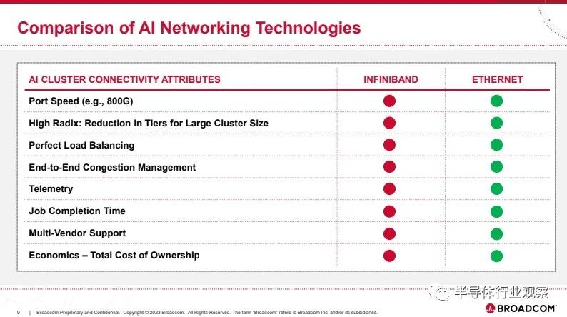 此外,博通表示,因为它可以处理 800Gbps 的端口速度(对于 PCIe Gen6 服务器)等等,所以它是一个更好的选择。对于将“AI”放在产品名称中,博通并没有做出过多解读,甚至关于网络 AI计算功能,他们也没涉及,这着实让人摸不着头脑,因为这是英伟达Infiniband 架构的主要卖点。