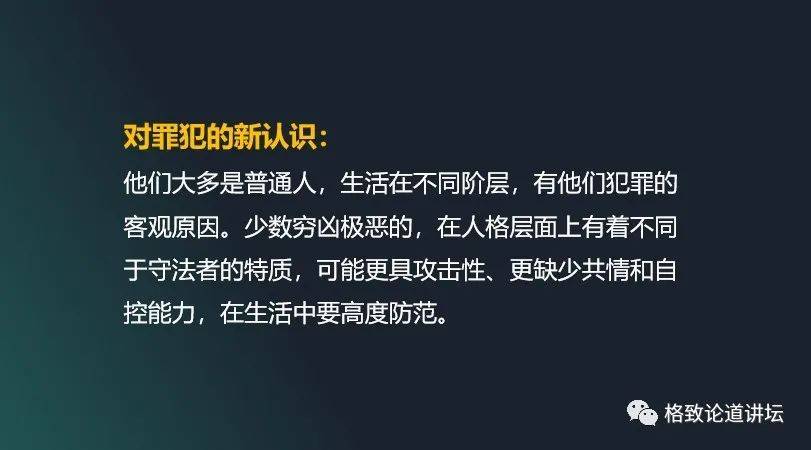 请大家注意两个主题,一个是我们对犯罪的人怎么看;第二个是我们用什么样的方法来了解和知道,他们是什么类型的人,他们是怎么想的?