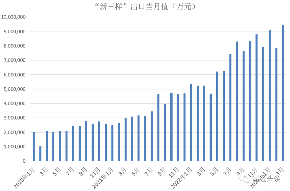 海关总署新闻发言人、统计分析司司长吕大良曾表示,一季度电动载人汽车、锂电池、太阳能电池“新三样”产品合计出口增长66.9%,同比增量超过1000亿元,拉高了出口整体增速2个百分点,比去年的拉动力进一步增强。