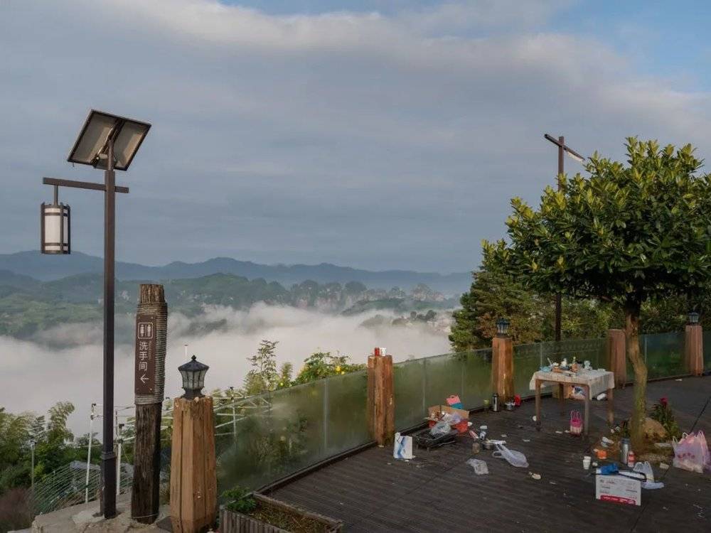 相反,他的相当一部分照片聚焦于江南地方的一些草草上马、复又可能因为规划不周而遭废弃的旅游遗迹,令人感到一种旅游与当地传统文化、旅游与自然生态之间的紧张关系。一些先是魔幻造城(园),后又被投资者始乱终弃的景点,其荒芜的废墟景象相当程度体现了资本的逐利性以及文化上的短视性。