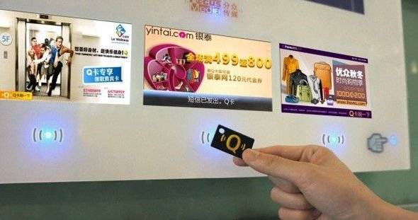 2011年,分众传媒开始全面的改造其位于北京、上海等七个全国核心消费城市的视频广告屏,在原有的视频播放屏幕下,加装了三块可以感应的小屏幕,作为促销活动的宣传点和互动点。同时在该屏幕中还颇有创意的加装了一个Q卡取卡处。消费者可以现场免费领导一张采用RFID技术的Q卡,激活后即可在互动屏的感应区刷Q卡,广告屏中显示的优惠信息就会以短信形式发到手机上,用户凭该信息可去商家消费或享受优惠。