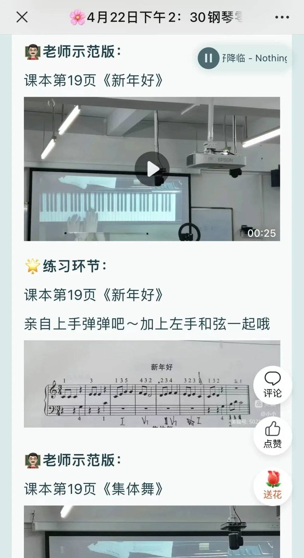 每周一个半小时的课程总是被安排得满满当当,放学后,老师还会布置弹奏、乐理的作业。而且每堂课老师都会录屏,让请假的同学也能正常上课。