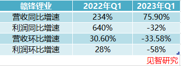 4月27日晚上,锂盐龙头企业赣锋锂业公布了自家的2023年一季度业绩报告。