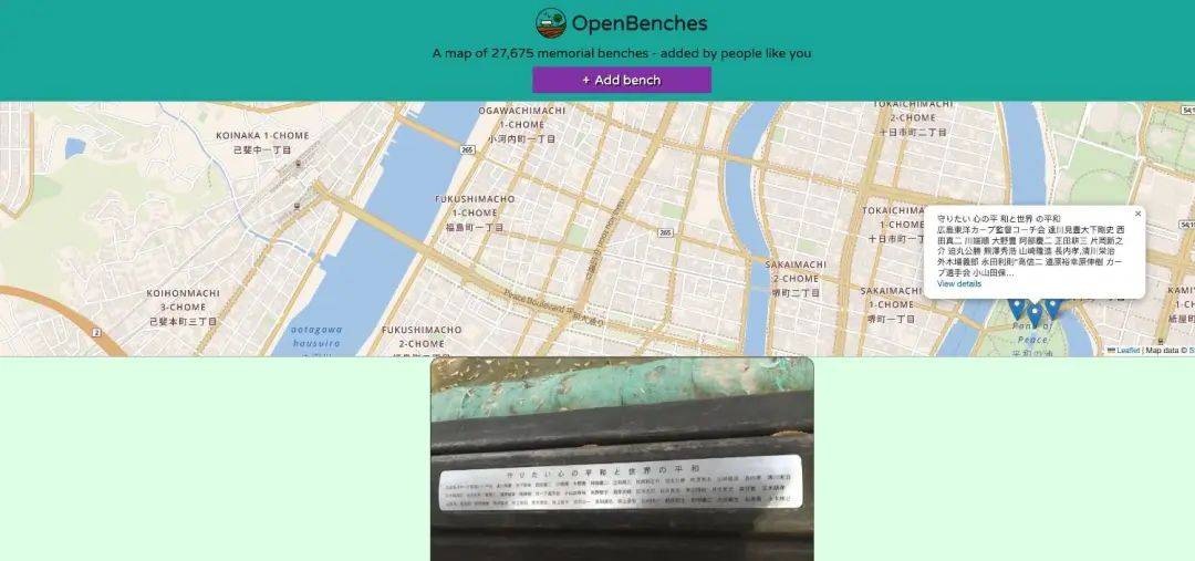 Eden 建立了一个名为 OpenBenches 的网站,邀请用户上传世界各地的纪念长椅图片和位置。截至今日,OpenBenches 已经收集了超过两万七千张长椅,托管了 250GB 的照片。