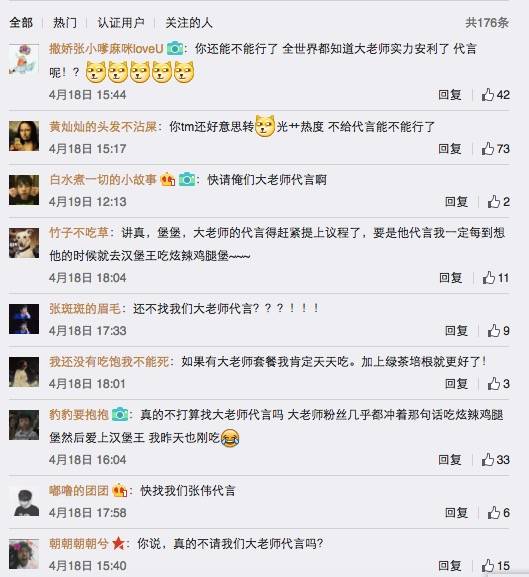 甚至开始到汉堡王的官方微博上请命,让大老师为汉堡王进行一个代言,毕竟这是一个爱汉堡爱到塞满冰箱的男子: