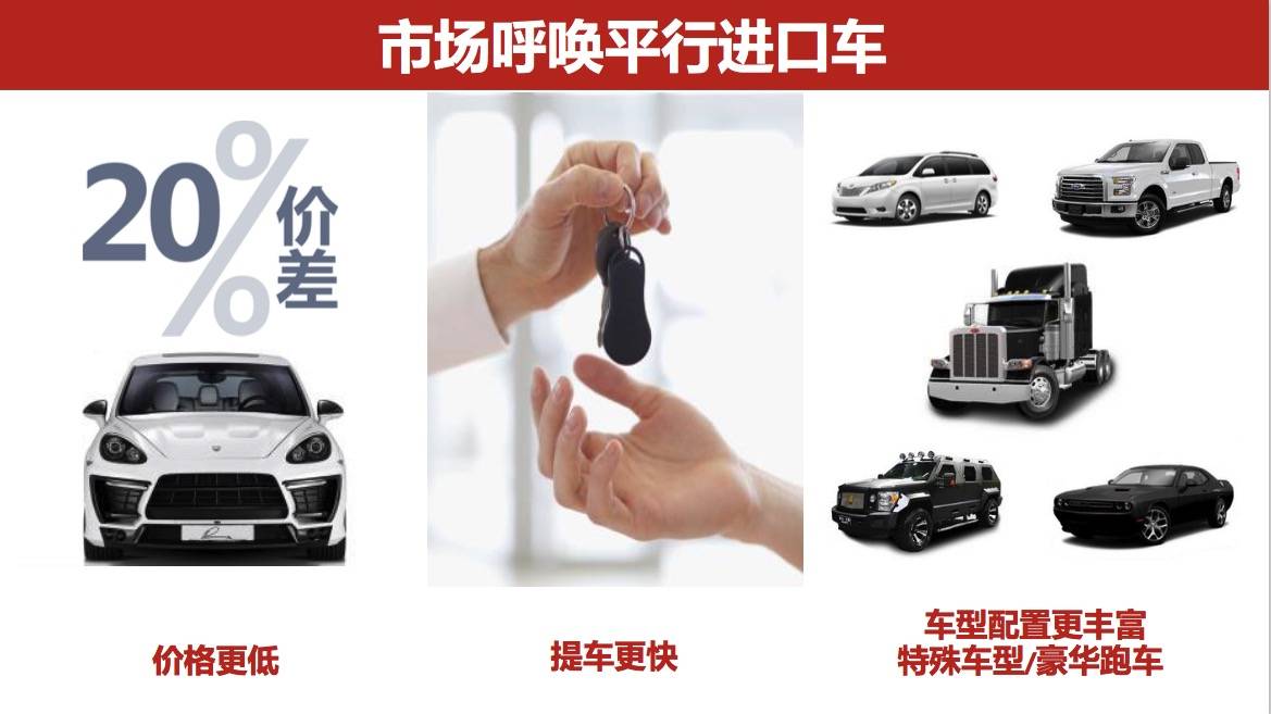 平行进口车之所以从去年到现在成为一个风口,主要是因为平行进口车产品本身具有几个优势: