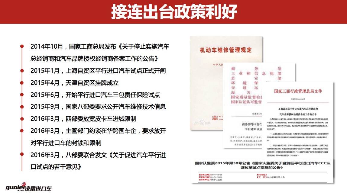 刚才讲是平行进口车产品的优势,现在也出台了很多利好的政策。从春节到现在,从3月份开始,向皮卡车放宽限可以进城,大家也可以留意,现在在北京有很多坦途、Toyota等。